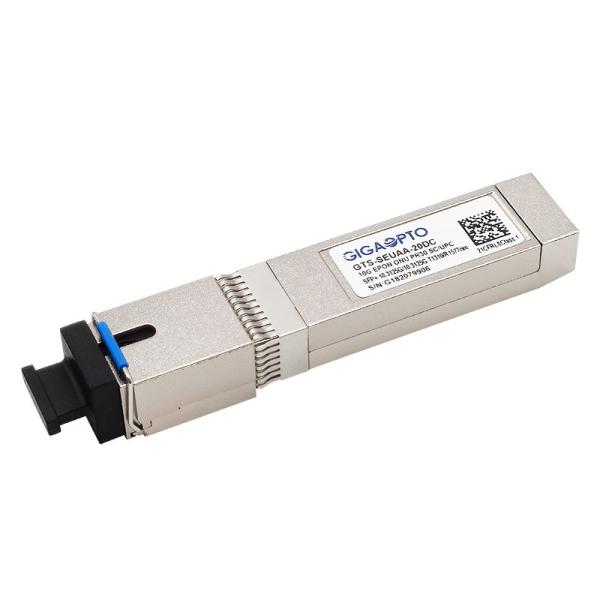 The GIGAOPTO's GTS-SEUAA-20DC is a high performance module for single fiber communications by using 1270nm burst-mode transmitter and 1577nm continuous-mode receiver. The 10G EPON ONU transceiver is supplied in SFP+ package with SC/UPC receptacle connector, designed for the optical network unit (ONU) of 10GEPON with 10.3125Gbps in downstream and 10.3125Gbps in upstream.